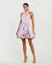 Sleek meets playful in this satin mini dress. Featuring a halter neckline, dramatic bubble skirt, and sculpted oversized rose, you're sure to turn heads in this beautiful dress.