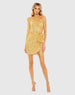 Gold Sequined One Shoulder Draped Side Bow Mini Dress