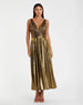 Crafted from shimmering metallic jersey fabric, this dress boasts a plunging neckline and ruched bodice. Perfect for any special occasion, this dress will leave you feeling glamorous and confident.