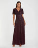Crafted from beautifully embellished fabric, this gown is proof that details matter. Styled with a V-neckline, surplice bodice, fluttery sleeves, and a column skirt, this dress is a masterpiece. The allover beaded and sequined leaves and branches add a unique touch, perfect for any special occasion.