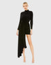 Black Jersey High Neck Asymmetrical Draped High Low Dress