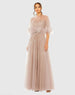 Intricate beading adorns this mini dress, adding a touch of glamour to any occasion. With its high neckline and ruffle detailing, it exudes elegance and femininity. Whether it's a formal event or a cocktail party, this dress ensures you'll make a striking impression. Mac...