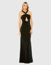 Black Knotted Halter Neck Keyhole Jersey Gown