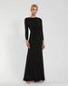 This long sleeve gown is made from jersey fabric, providing a comfortable and stretchy fit. The boat neckline and ruched waist detailing add timeless elegance, while the beaded cuff long sleeves adds a touch of glamour. Perfect for any occasion, this gown offers both style and comfort.