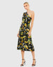 We’re obsessed with the abstract painterly print on this mid-length cocktail dress. The silky dress has a single pleated shoulder and easy, fluid fit. Wear yours for a wedding or evening party with chunky gold earrings and strappy sandals.