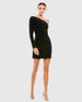 Black Rhinestone Encrusted One Shoulder Long Sleeve Mini Dress