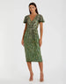 Green Embellished Faux Wrap Flutter Sleeve Dress