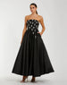 Black Crystal Embellished Strapless Satin A-Line Dress