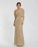 Gold Draped Sleeve V Neck Gown