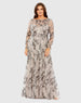 Beige Embroidered Long Sleeve A Line Gown (Plus)