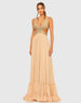 Beige Lace Up Rhinestone Embellished Cut Out Gown