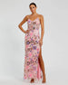 Crafted from hand-embellished fabric, this stunning Spaghetti Strap Bustier Applique Gown will make you stand out at any formal event. Its spaghetti straps and thigh high slit add an alluring touch to this elegant piece, making it a must-have for any fashion-forward wardrobe.