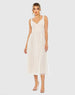 This sleeveless dress features a v-neck and tiered ruffle detail for a feminine and sophisticated look. Made from tulle fabric, it is fully lined and includes a concealed back zipper. Perfect for any special occasion, this dress is a must-have addition to your wardrobe.