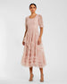 Pink Short Sleeve Mesh Micro Ruffle Midi Dress
