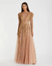 Pink and Gold Beaded Illusion Puff Sleeve Gown