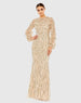 Gold Embellished High Neck Puff Sleeve Trumpet Gown