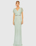 Elevate your look at your next gala with this stunning net fabric dress. Featuring a flattering V-neckline and short sleeves, it creates a chic, feminine silhouette. The rhinestone waist detail adds a touch of sparkle, while the back slit offers an alluring finish. Perfect for special occasions, this dress seamlessly combines elegance and modern glamour.