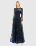This elegant embroidered mesh dress is the perfect choice for any special occasion. Featuring a sophisticated high neckline and long illusion sleeves, it offers a stylish yet modest look. The floral embroidery and metallic beaded embellishments add a touch of glamour, making this dress a standout piece. Ideal for weddings, formal events, and evening affairs.
