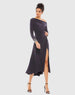 Make a bold statement in our Off-the-Shoulder Long Sleeve Jersey Midi Dress. With flattering ruching at the waist, jewel-accented cuffs, and a daring thigh-high front slit, this dress blends timeless elegance with a modern edge. Perfect for special occasions, this stunning dress ensures you stand out with confidence and style.