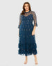Elegant and sophisticated, this half-sleeve dress features hand-embellished detailing. The sheer flutter sleeves add a delicate, feminine touch while the ruffle neckline adds a touch of charm. Perfect for any special occasion.