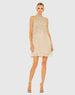 This embellished trapeze dress boasts a high neckline and sleeveless design, exuding modern elegance. The trapeze a-line silhouette offers a comfortable fit, while the shimmering sequin embellishments adds a touch of glamour to your look.