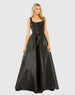 Shine at any formal event in our elegant Ballgown. Featuring a square neckline, sleeveless design, and pleated metallic fabric for a stunning shimmer. The intricately pleated bodice adds texture and dimension, making this gown the perfect choice for a memorable, sophisticated look.