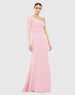 Turn heads in our One Shoulder Trumpet Gown, designed with a striking single puffed long sleeve. The fitted bodice flows into a dramatic flare, creating a sleek yet elegant silhouette. Ideal for any formal occasion, this gown blends contemporary style with classic sophistication.