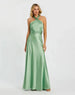 Crafted from luxurious satin fabric, this gown features a flattering cross halter neckline and elegant ruched detailing. The open back, accented with a self-tie bow, adds a glamorous touch. Perfect for any formal event, this gown combines sophistication and style for a stunning look.