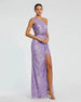 Sequined One Shoulder Draped Lace Up Gown