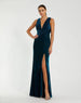 Velvet Pleated Sleeveless Plunge Neckline Gown